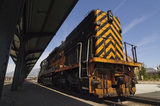 UTA commuter train whizzes past 5371, Union Station hiding in the background.
